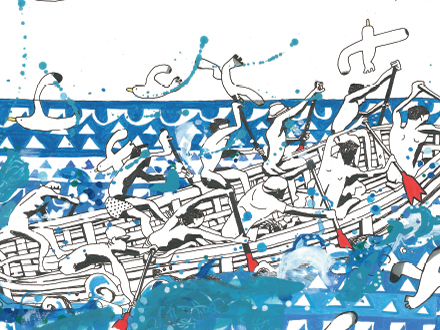 イラストレーター ぽろんぺさんによる「さくらモダン墨絵似顔絵」